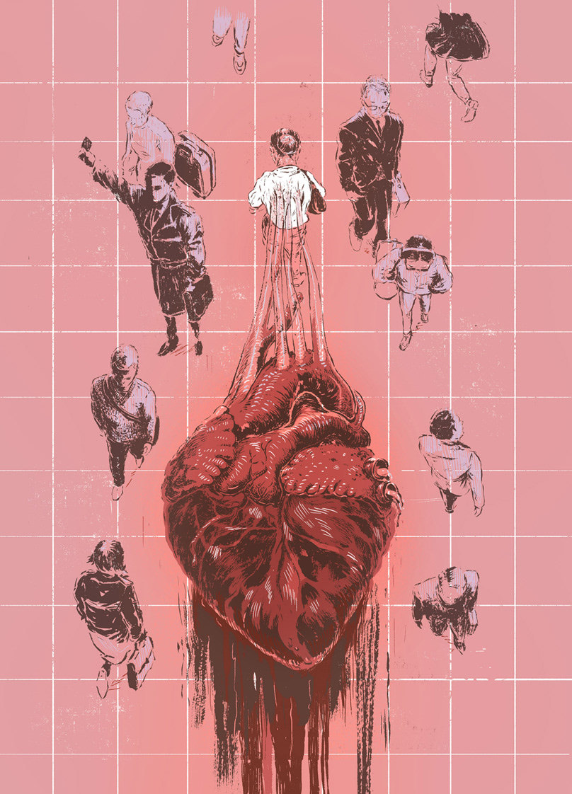 Illustration for an essay about grief in Finnish magazine Voima. The article was written by PInja Nikki.