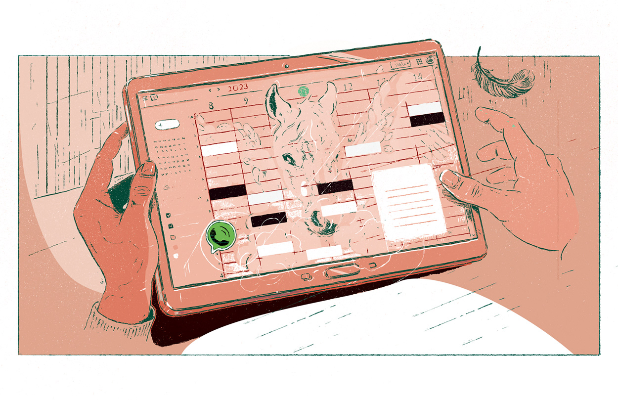 Illustrations for Finnish magazine Journalisti and an article on journalists being spied on and spyware such as Pegasus.