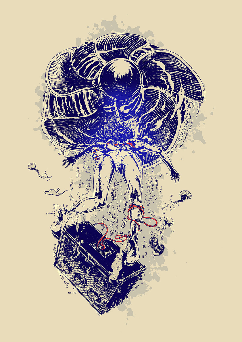 "The Amplifier" was created for German doom band Ahab's t-shirt design.